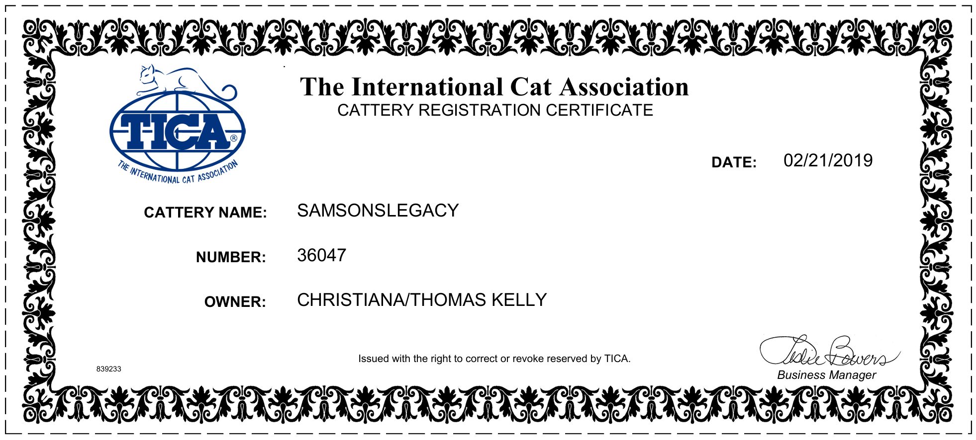 All Samson’s legacy cats have a pedigree that proves their origin. Samson is a son of a World champion. All of our cats come from European championship bloodline.